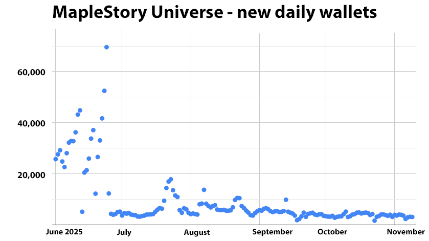 Este impacto pode ser visto claramente em termos do número de novas carteiras que entram no ecossistema, que atingiu o pico de 70.000 em junho de 2025, antes da Nexpace introduzir a sua primeira onda de medidas anti-botting. incluindo seu sistema de nível de crédito.