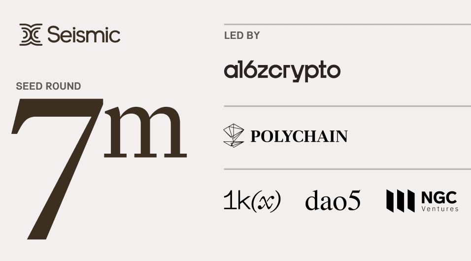 A sísmica levantou US $ 7 milhões em uma rodada de financiamento liderada pelo braço de investimento Crypto A16Z de Andreessen Horowitz e com a participação da PolyChain Capital, Alliance, DAO5, NGC Ventures e 1kx.
